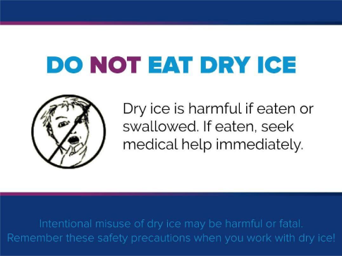 - REMEMBER — Never play with dry ice; also, never allow children to touch, smell or taste dry ice.