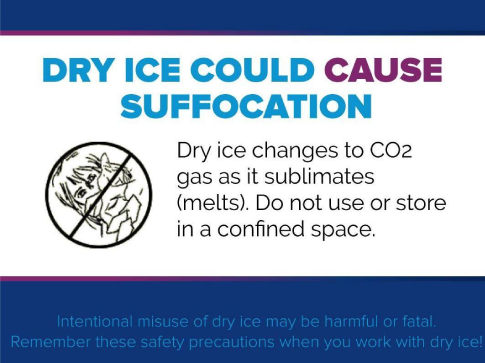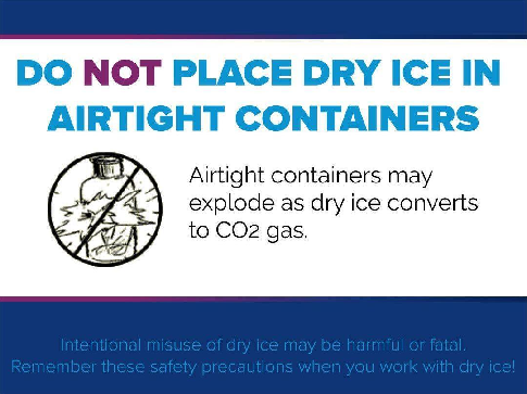 - ALWAYS — Ensure that dry ice is disposed of in a safe, Well-Ventilated place, away from the access of passer-by especially children.